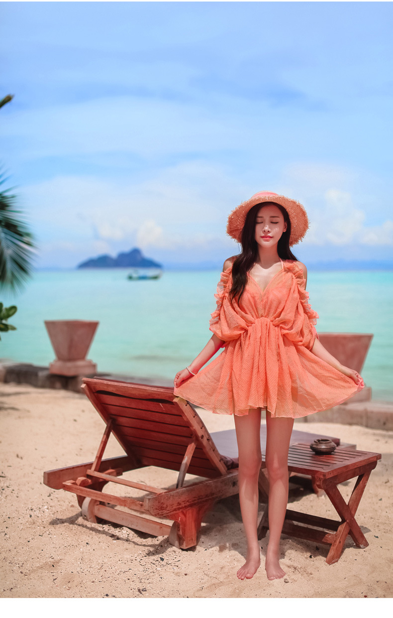 罩衫本身就做的比較大件,呈現輕鬆舒適而自在的浪漫氛圍,而不敢直接穿比基尼在沙灘上,套一件罩衫在外頭就對了!