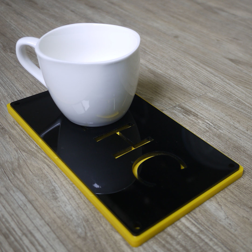 寫著FLHC很像吊牌的掛牌,其實是茶杯墊。