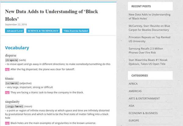順帶一提,教材裡最特別的是有「每日新聞」(或「初學者每日新聞」)這個選項,每天都會更新,非常適合拿來自我練習。