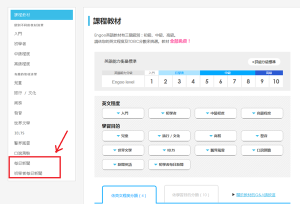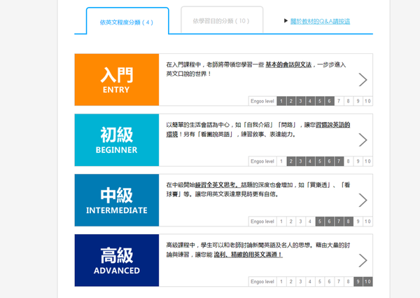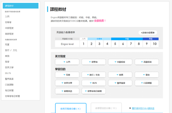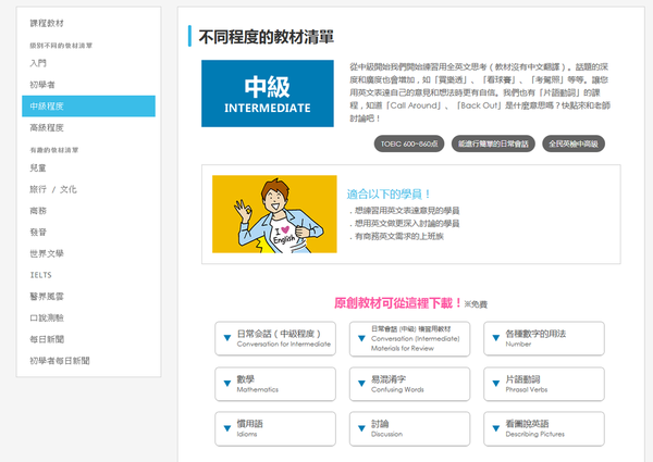 點選之後就可以進入到這個畫面,在這邊就可以選擇自己喜歡的教材啦!可以依照程度,或是應用來區分。