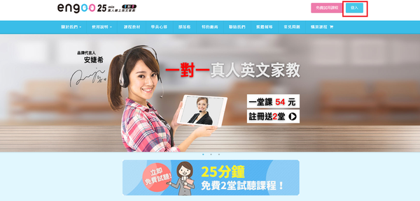 Engoo的訂課系統其實十分的好用,只要先進入官網,點選右上角登入,點選預約新課程就可以了。