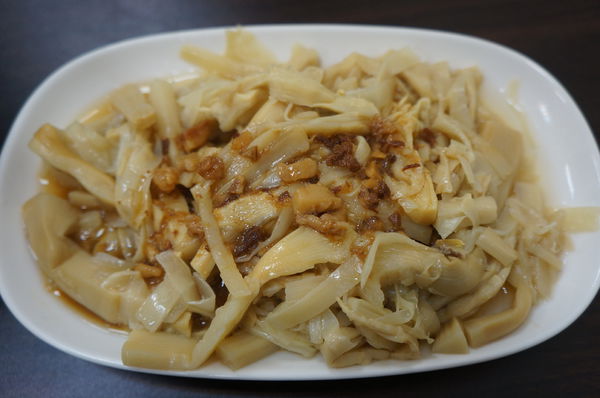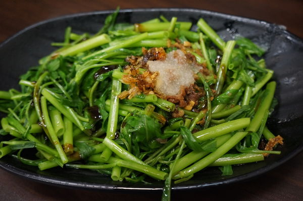 燙青菜除了醬油調味,還有非常大量蒜泥增添風味~