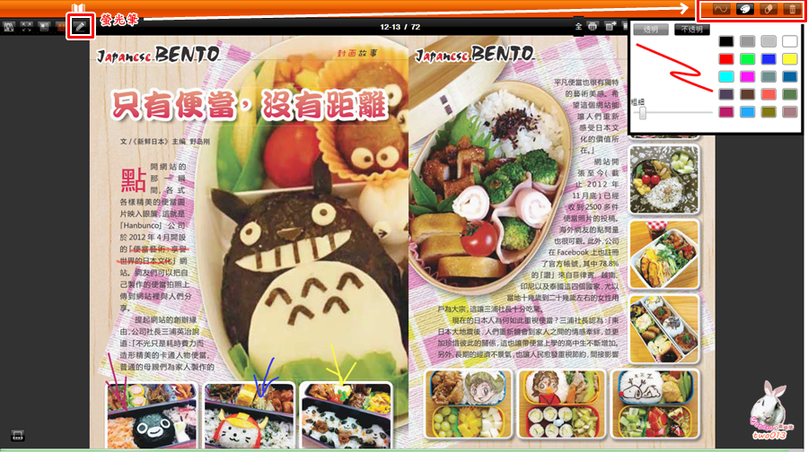 像是這本介紹日式便當的當期雜誌,繽紛可愛的讓人想加上更多重點標註= =+