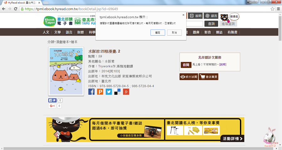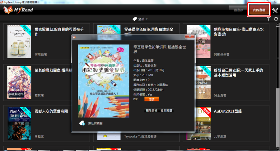 點擊電子書圖片就會顯示書籍資料、借閱期限及權限