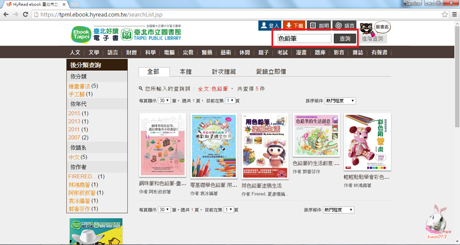 使用者可以自行輸入關鍵字查詢想要找的書籍種類