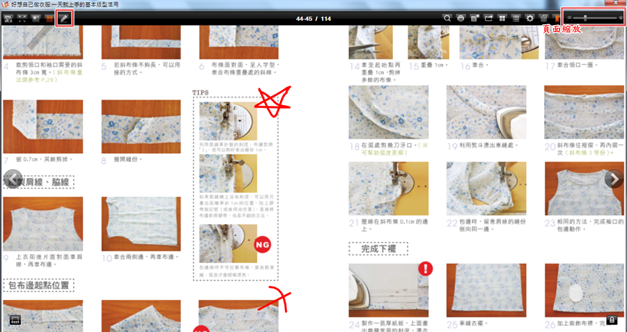 這陣子迷上手作的013在看縫紉書籍時就會特別標記重點並放大細節