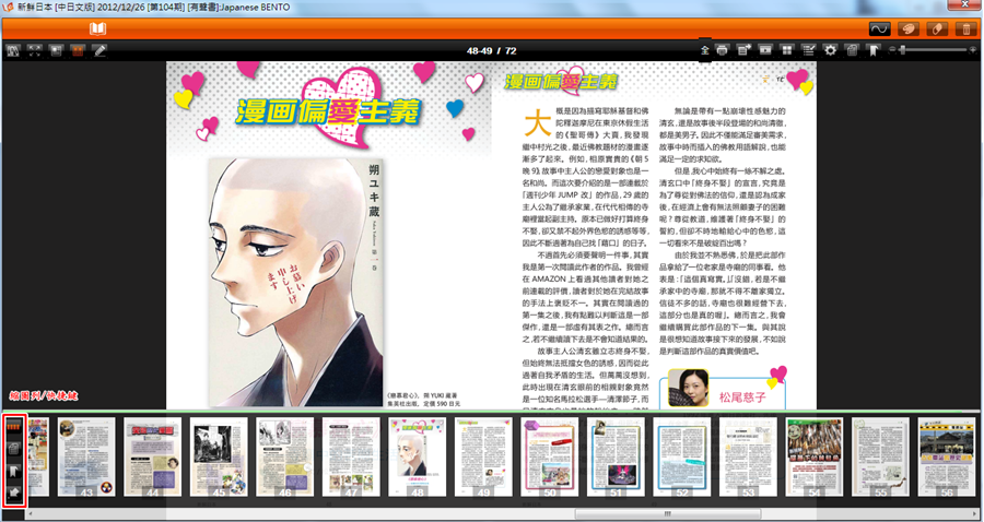 點選左下角圖案,會出現快捷鍵/縮圖列,方便看圖跳躍到要觀看的頁面