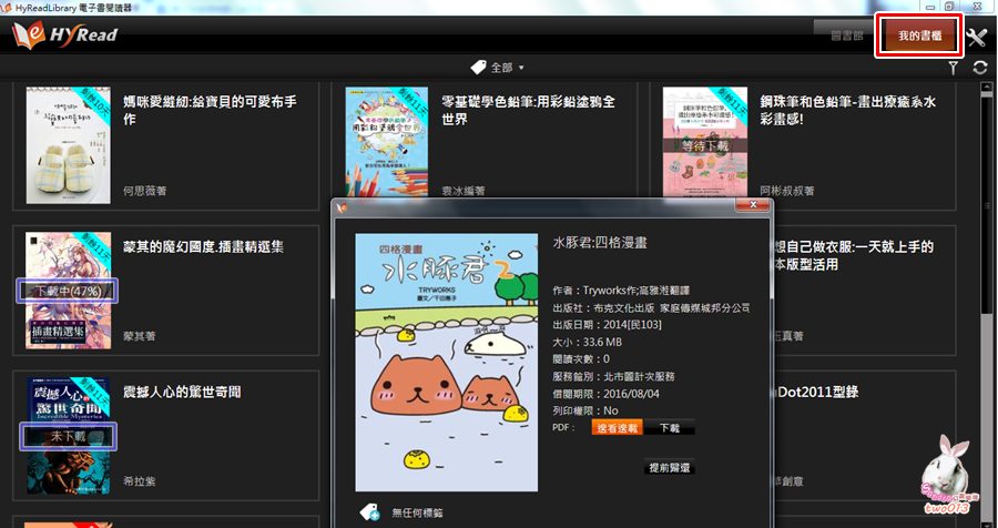 HyRead Library閱讀軟體下載:http://ebook.hyread.com.tw/hyreader_pc.jsp