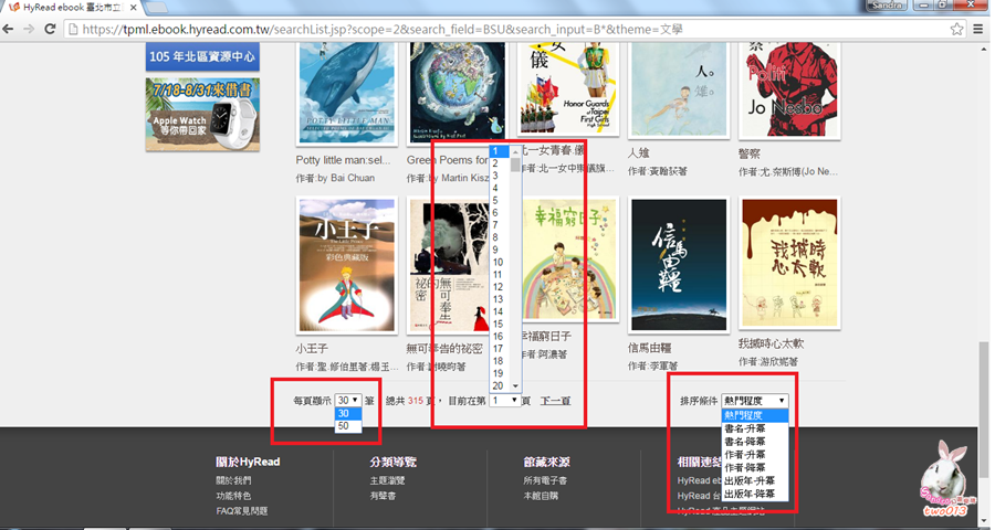 甚至可透過側欄或是頁尾排序條件,依年代、作者或熱門程度等條件分類