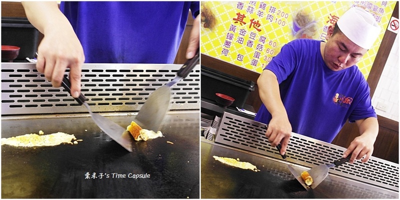 一邊是邊煎鮮蚵、扇貝邊快手炒羊肉,