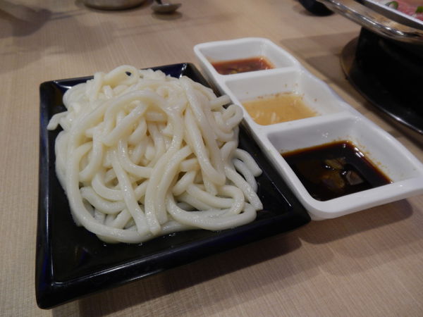 還附上烏龍麵跟3種沾醬(哇沙米、蒜末泥、五味醬)