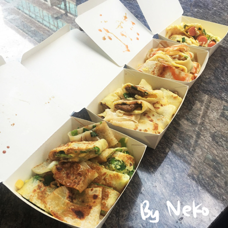 老闆說各種蛋餅熱門程度都滿平均的各有擁護者,比較特別的是九層塔、蔬菜、燒肉、薯餅、肉鬆...