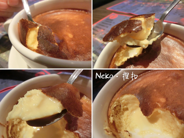 靠近表面像舒芙蕾,邊緣像蒸蛋,中間則是布丁口感,