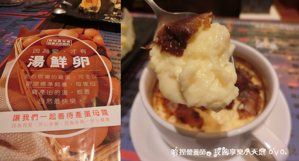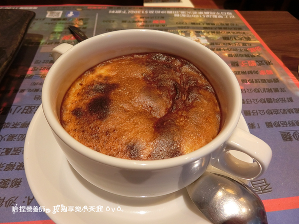 採用全佑牧場的土雞蛋兩顆加入沖繩黑糖、鮮奶及鮮奶油製作而成,表面烤的焦黃飄出焦香味,沿著邊緣挖下去,裡面軟嫩多汁好像蒸蛋!!口感則像烤布丁一樣滑嫩,微甜又飄有濃郁的蛋香,吃起來不油不膩、香甜好吃!