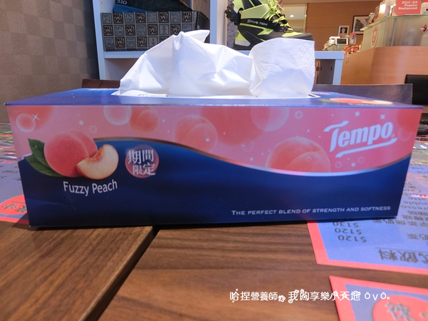 對於食材的控管,老闆很要求,一定是他們覺得不錯的才會煮給我們吃,就連衛生紙也都特地從香港帶回來,一進餐廳其實就有聞到淡淡的果香味,原來就是這盒衛生紙,這紙的材質比一般的還厚,不易產生棉絮,對於過敏的人來說是較佳的選擇,看得出老闆真的很用心呢