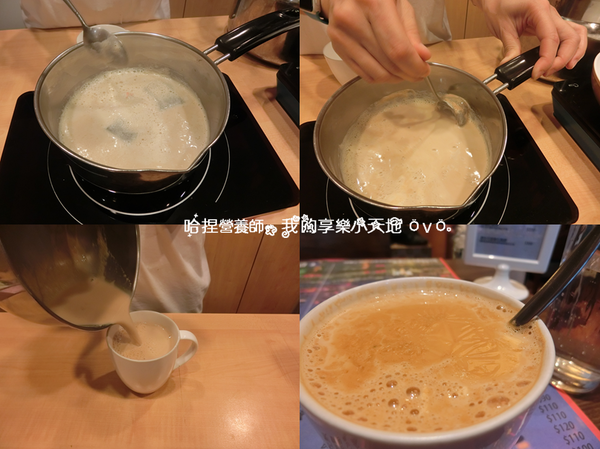 而她也不藏私的教我如何煮,材料很單純,就兩包茶包和全脂鮮奶,全程不加一滴水和糖,火侯要掌握得宜並不停的攪拌,擠壓茶包讓味道融出,才煮得出一杯香濃奶茶,真的好費工呢