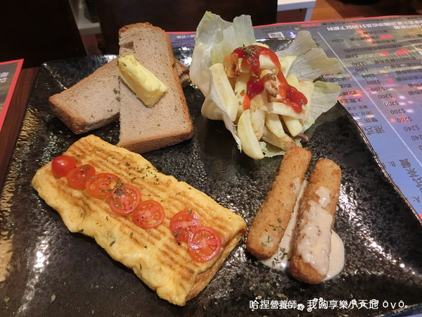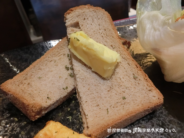 老闆娘還傳授了一個小訣竅,先把奶油抹均勻後切九宮格吃,這樣可以讓每樣菜均勻分配都吃的到,且不會吃到最後醜醜的,難怪以前我切到最後都慘不忍睹,下次就知道要怎麼吃啦