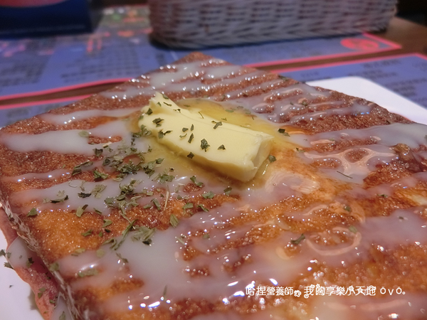 傳統的做法是把吐司拿去油炸,而他們是用氣炸鍋炸的,油脂含量減少很多!!上面的奶油也比較小塊呢