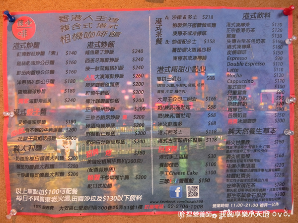 在大安區寧靜的住宅區中,隱藏了一間頗具特色的港式茶餐廳-徠一咖啡,聽說是正統香港夫婦所經營的,原本是間相機迷的聚集地,由於夫妻都愛吃美食也想念香港的食物,所以就變成了茶餐廳,這麼有故事性的特色餐廳,哈捏當然也要去朝聖一番!