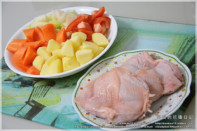 因此我這天準備了去骨雞腿肉、紅蘿蔔、洋蔥、蕃茄、蘋果、咖哩塊及椰子油