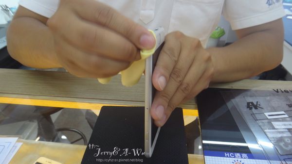 全滿版的螢幕保護貼與背面包膜完美的將Jerry的整支手機包覆起來,