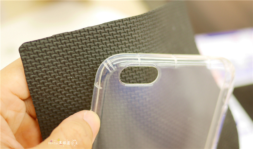 雖屬透明氣墊軟殼,但是容易摔傷的四角有做溝槽處理緩衝撞擊力…