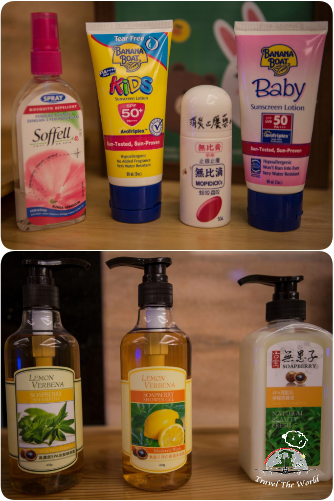 櫃檯旁邊,貼心的準備了防蚊液、消炎止癢藥水、防嗮乳。