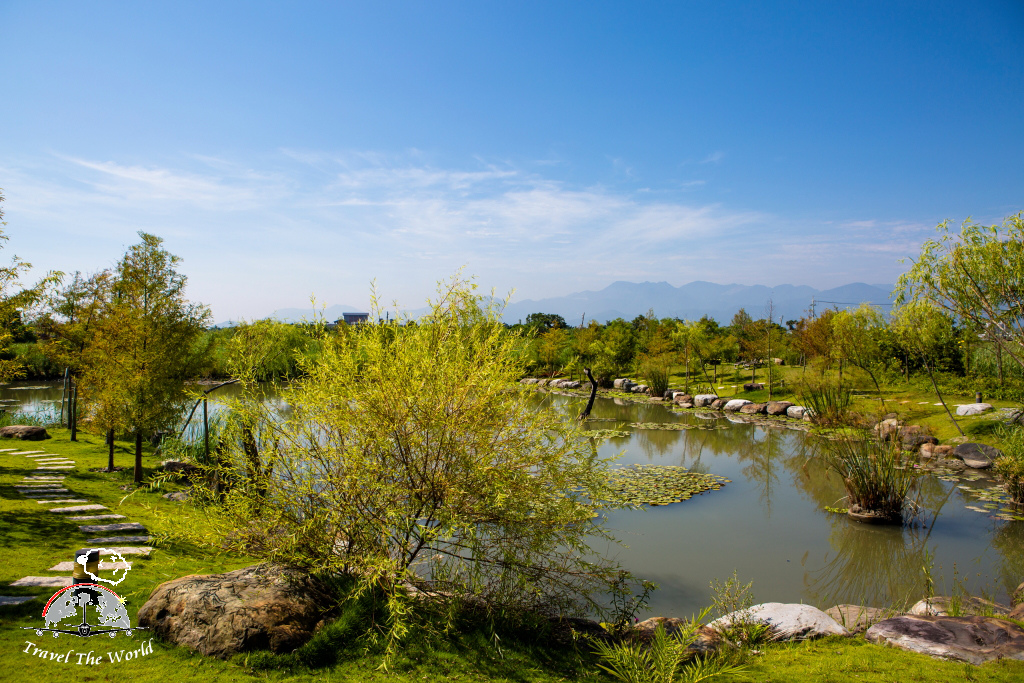 陪伴小羊兒的是眼前的花園綠地、水池湖畔、廣闊的落羽松。