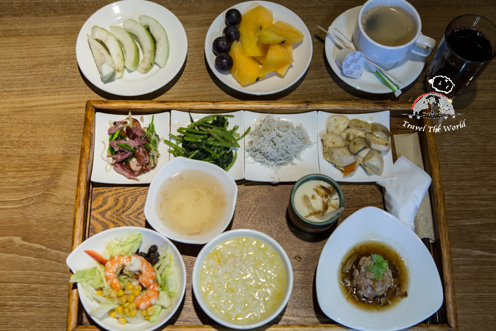 早餐的自助取用水果有番石榴、葡萄、小玉,