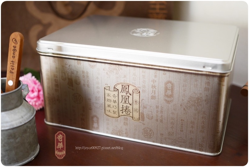 奇華肉鬆鳳凰蛋捲包裝採用經典設計的鐵盒