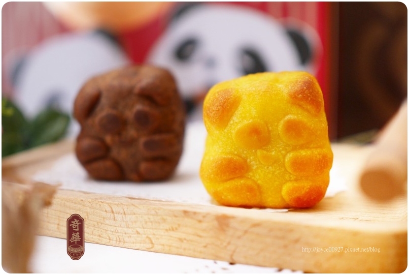 今(105)年新品 巧克力奶黃 口味,鎖定年輕族群加上熊貓圖樣鐵盒...