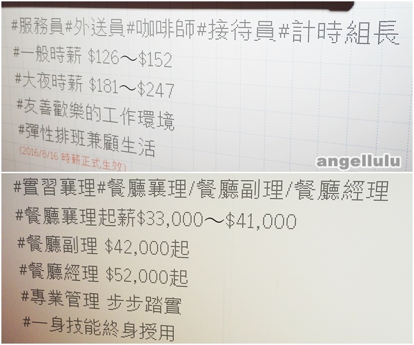 餐廳副理起薪42K起,經理職位級則52K以上。