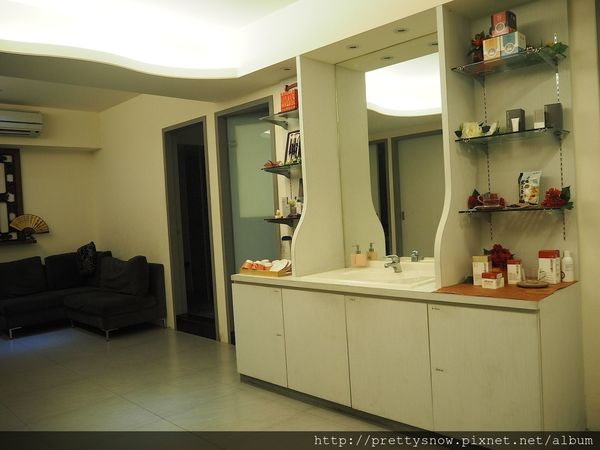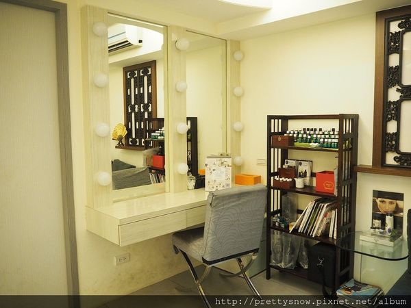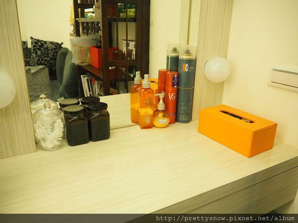 舒適乾淨的大大梳妝台上附上許多SPA後整理儀容的必需品