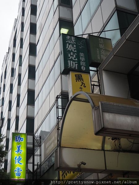 走路約五分鐘抬頭可看到慧妮克斯美學的綠色招牌。
