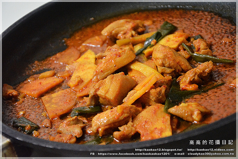 《韓式辣雞》是使用去骨去皮的雞腿肉,再加入地瓜片、辣椒、大蒜、蔥、