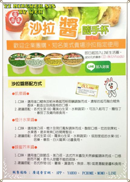 廣達香的醬都很濃稠的, 不會看起來稀稀的,搭配起來都會像外面餐廳的沙拉醬