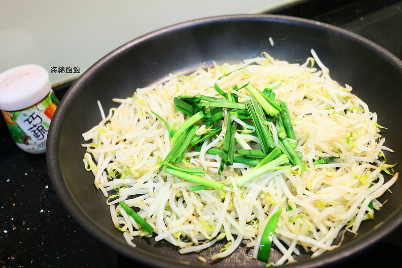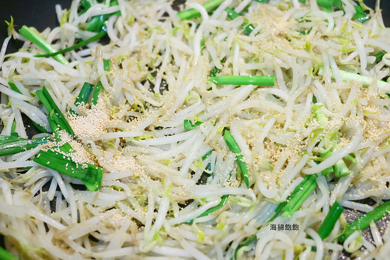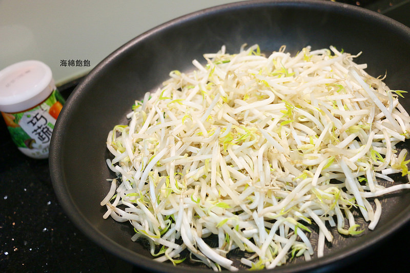 2.平底鍋加入少許油,放入洗好的銀芽,以中火加熱