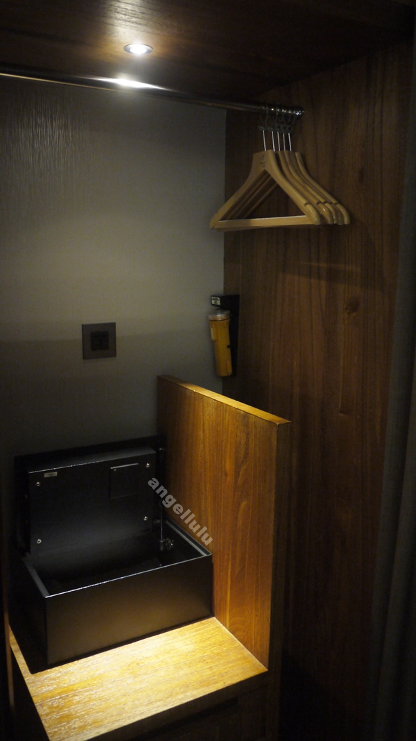 房內有個大衣櫃,裡頭還有保險箱、緊急手電筒等,