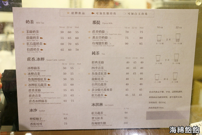 前面標住皇冠為招牌商品,各可搭配焦糖珍珠或白玉珍珠