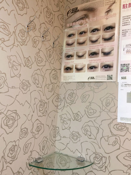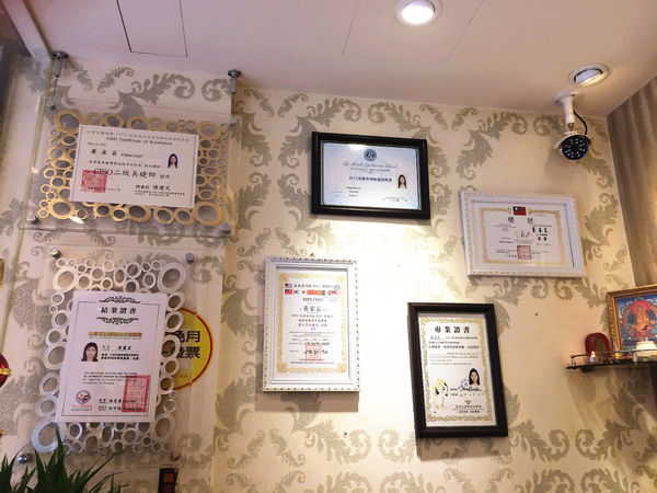 牆上有許多獎狀、修業證明、技術考試證明,甚至還有山茶花國際植睫技術的結業證書!