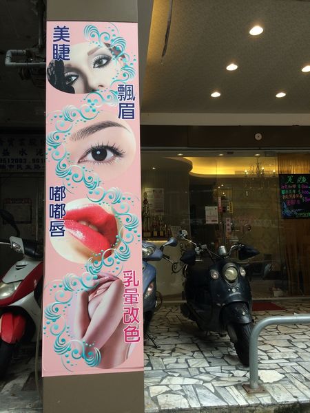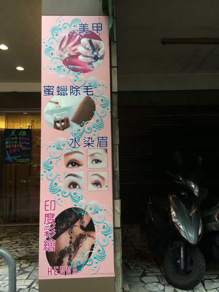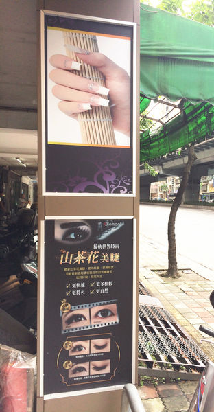 門口兩邊的柱子有很清楚美睫師 Tavia的各項專長