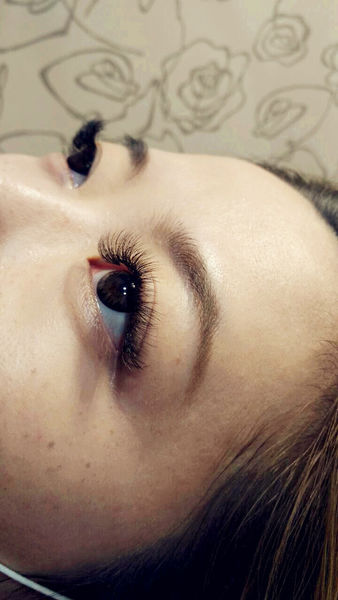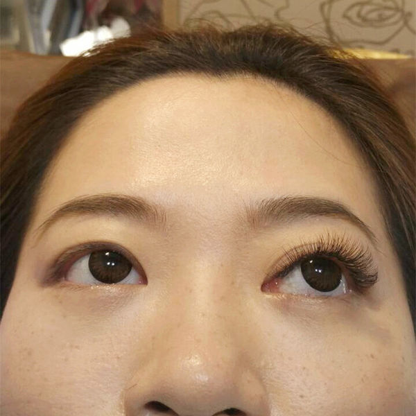 先接好左眼,Tavia美睫師給我先看接起來的開花美感