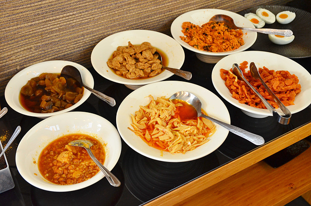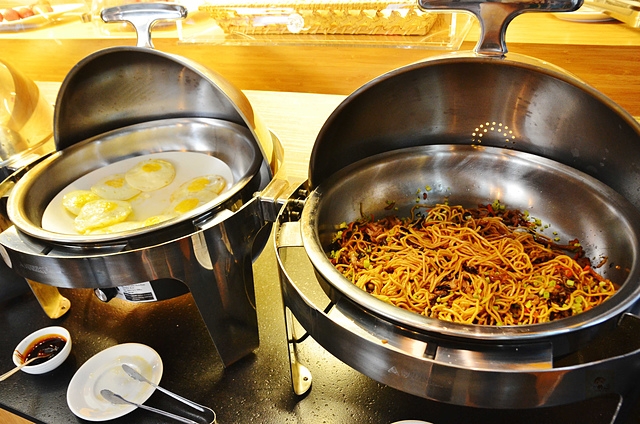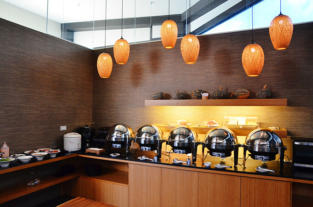 早餐區位於6樓,對住5樓的我們來說很方便,出房門爬一層樓梯就到了XD,食材區就是昨天下午上來看到的休息區旁的餐檯,只是現在餐檯有放上了各式各樣美味的菜色來當早餐吃。