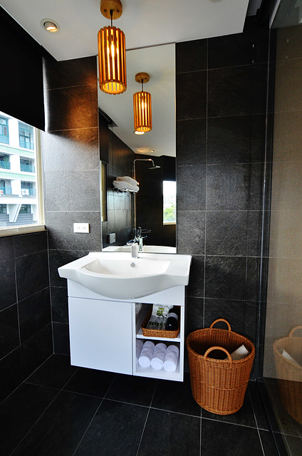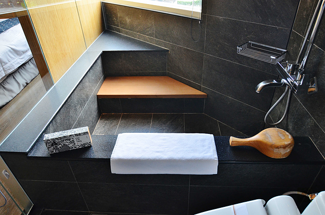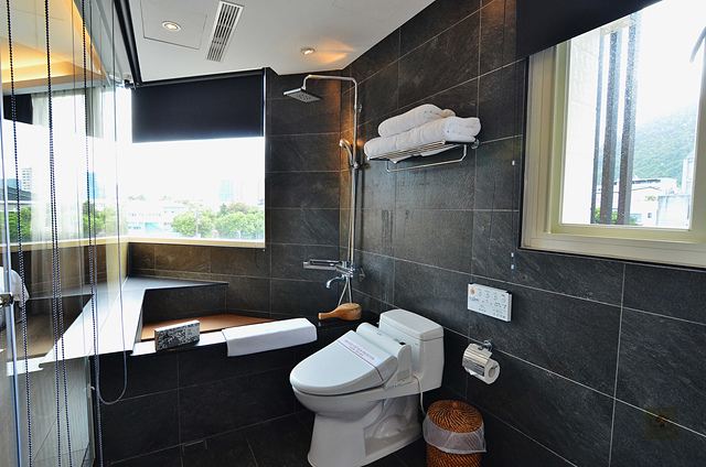浴室是房間較靠外側的區域,白天的採光很好,晚上會稍微暗些,且此房型沒有乾濕分離的設計,但是有一個頗大的浴缸,用來泡溫泉還蠻舒爽的,哈。