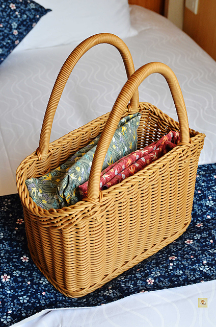 來看看這個剛剛由飯店人員一起帶到房間的小籃子內放了什麼東東,原來是給房客的浴衣和涼鞋耶,快來看看是甚麼樣的款式。