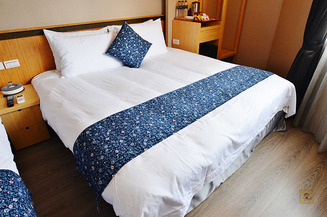 因為是三人房,所以是給了一大床和一小床,看官網說是進口五段式獨立筒床組,睡起來很軟很舒適,躺床後就有點不太想再爬起來了,檢查了一下棉被和床單,也都挺乾淨的。