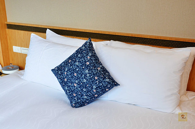 床上共有4個羽絨枕和一顆小抱枕,從枕頭數量來說也已經算是到大飯店等級了,枕頭睡起來頗軟的且又大,躺起來很舒服的唷。