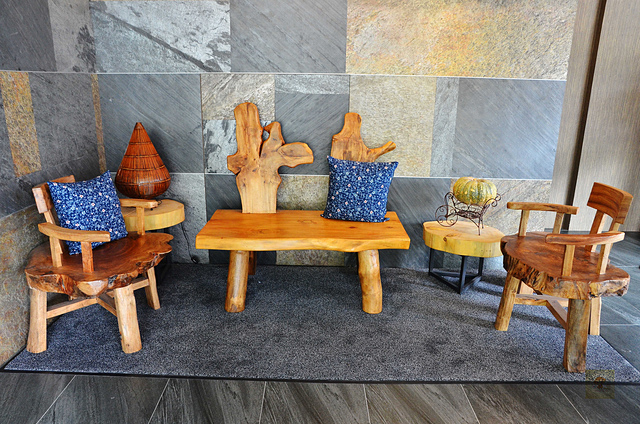 休息區的桌椅都是原木打造,散發出陣陣的木香,那香氣就讓人感覺很舒暢。