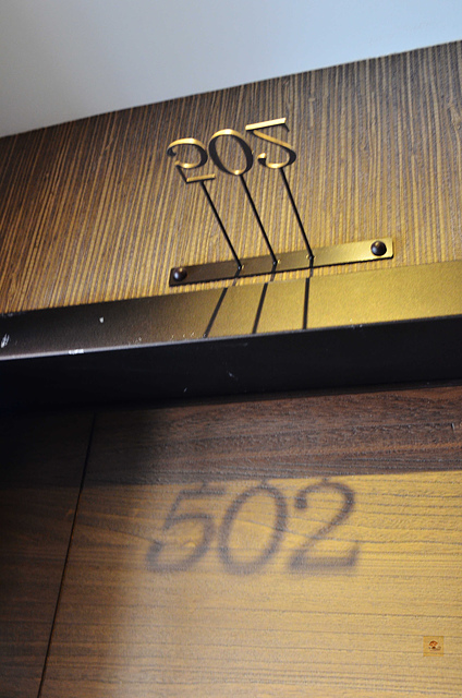 這次入住的是502號房,也是該飯店房型中的三人房,房號還用燈光投影的方式投射到門上,好有創意和新鮮感XD