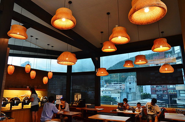 位 於飯店的6樓設有泡腳池和休息區,透過一盞盞懸掛的竹編吊燈,讓這邊變得很有氣氛,7樓則是戶外觀景台,如果想到達7樓就必須從6樓爬樓梯上去,電梯最高 就只到6樓喔。休息區的空間還蠻大的,看到不少房客到這邊聊天吃點心,而隔天早上休息區這邊就變成供早餐的餐廳喔。一個空間兩種利用,將有限的空間充分使 用呢。